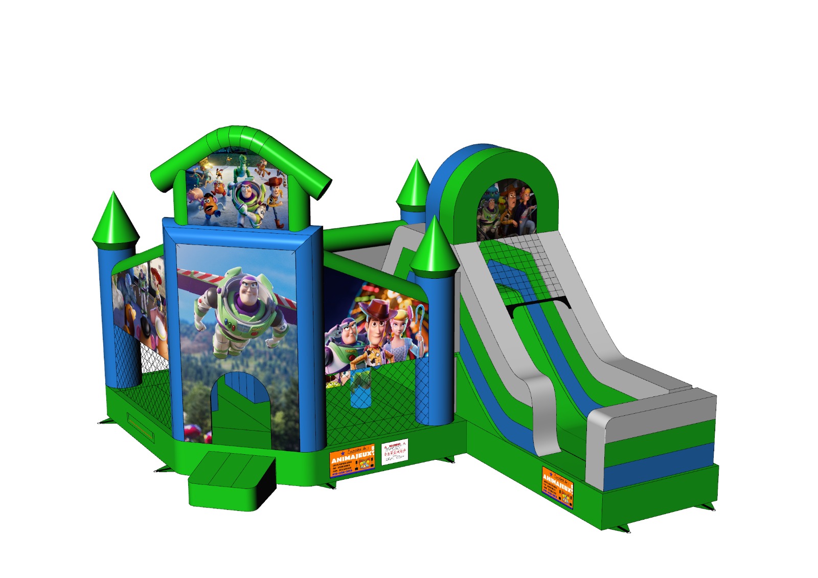 Super Combo idéal pour rebondir et glisser - Il est important de bien ancrer le jeu au sol à l’extérieur - En cas d’orage mettre le ventilateur à l’abris - La surveillance du jeu est obligatoire pour la sécurité des enfants - Un nettoyage rapide avant le retour du jeu permet de ne pas oublier de jouet à l’intérieur. |
