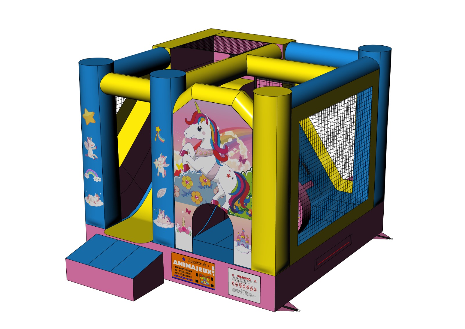 Super Combo idéal pour rebondir et glisser - Il est important de bien ancrer le jeu au sol à l’extérieur - En cas d’orage mettre le ventilateur à l’abris - La surveillance du jeu est obligatoire pour la sécurité des enfants - Un nettoyage rapide avant le retour du jeu permet de ne pas oublier de jouet à l’intérieur. |